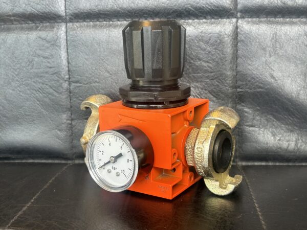 Metal Work drukregelaar 0-12 bar instelbaar. zeer goede kwaliteit. Aansluiting 2x ludecke klauwkoppeling. Andere configuraties zijn ook mogelijk.